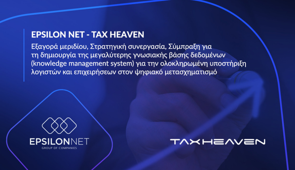 Σύμπραξη για την δημιουργία της μεγαλύτερης γνωσιακής βάσης δεδομένων (knowledge management system) για την ολοκληρωμένη υποστήριξη των επιχειρήσεων στον ψηφιακό μετασχηματισμό Ο Όμιλος EPSILON NET, ακολουθώντας με συνέπεια το δρόμο της συνεχούς ανάπτυξης και ενισχύοντας το μοντέλο των στρατηγικών κινήσεων συνεργασίας με εξειδικευμένους παρόχους τεχνολογίας και γνώσης, ανακοινώνει την εξαγορά του 60% της TAXHEAVEN Α.Ε., […]