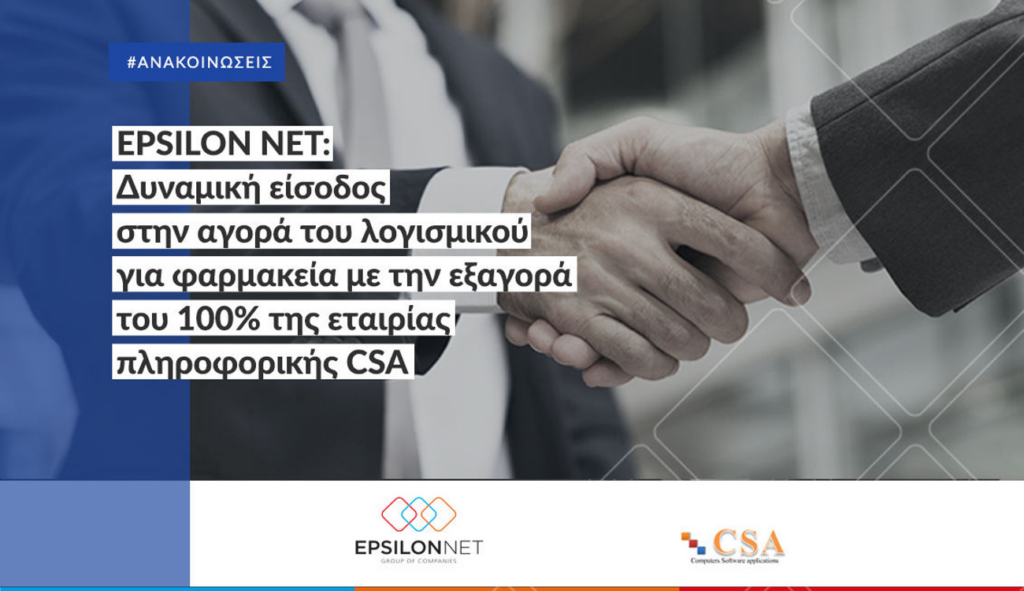 EPSILON NET: Δυναμική είσοδος στην αγορά του λογισμικού για φαρμακεία με την εξαγορά του 100% της εταιρίας πληροφορικής CSA