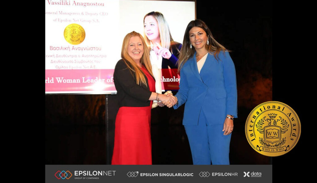 «World Woman Leader of Information Technology» στα Who is Who International Awards Διεθνή αναγνώριση ως «World Woman Leader of Information Technology» έλαβε η Γενική Διευθύντρια και Αναπληρώτρια Διευθύνουσα Σύμβουλος της Epsilon Net, κα Βασιλική Αναγνώστου, από την Υφυπουργό Τουρισμού, Σοφία Ζαχαράκη, στα βραβεία Who is Who International Awards. Η υψηλού κύρους εκδήλωση των βραβείων, με τίτλο «Ελλάδα, ο Κόσμος Όλος», πραγματοποιήθηκε στις 30 Σεπτεμβρίου 2021, στην Αθήνα, υπό την Αιγίδα τουΥπουργείου Ανάπτυξης & Επενδύσεων, του Υπουργείου Τουρισμού και του ΕΟΤ, και την […]