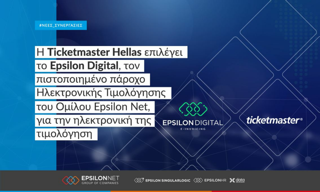 Η Ticketmaster Hellas επιλέγει το Epsilon Digital, τον πιστοποιημένο πάροχο Ηλεκτρονικής Τιμολόγησης του Ομίλου Epsilon Net, για την ηλεκτρονική της τιμολόγηση